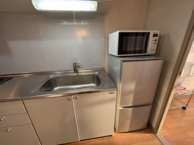 - カーテン、テーブル、食器類、お玉、まな板、キッチン洗剤、スポンジ、フライパン、ヤカン、鍋、缶切、急須、三角コーナー、栓抜き、包丁、トイレットペーパー、トイレ用ゴミ箱、トイレ用ブラシ、トイレ用洗剤、洗面器、風呂用スポンジ、ゴミ箱、ティッシュ、ハンガー、お風呂洗剤、灰皿、雑巾、鏡、物干し竿、目覚まし時計